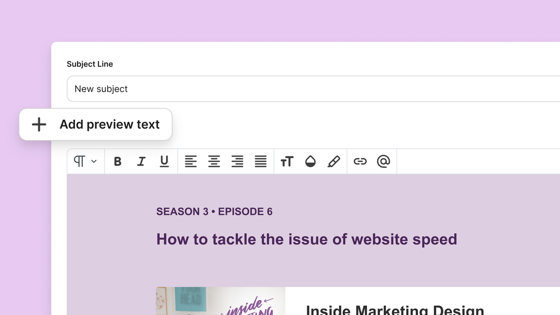 We moved preview text out of hiding and into your main email editor—right under the subject line where it belongs. Preview text can increase open rates by up to 30%, yet it's one of the most forgotten optimizations. Now it's impossible to miss.